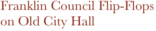 This HISTORIC vote took place after several speeches in support of historic preservation in Franklin, and in opposition to Mayor Fred Paris' plans to sell the building for $191,000 to a private investor.